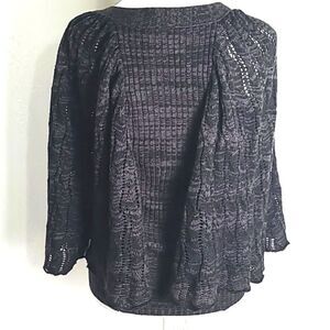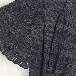 Cardigan Sweater Cape with Batwing Sleeves, Black & Gray Loose Knit, Size Medium