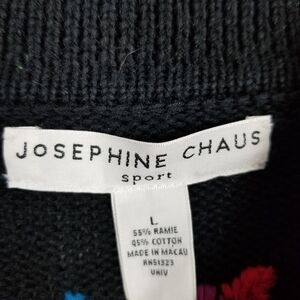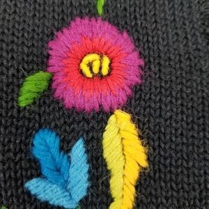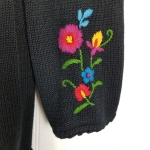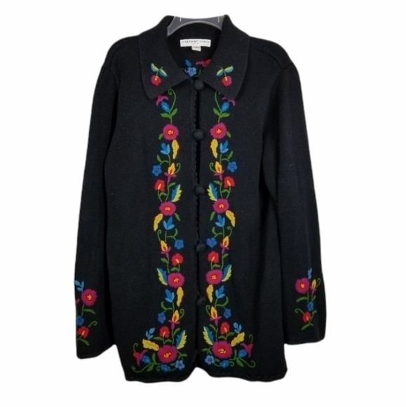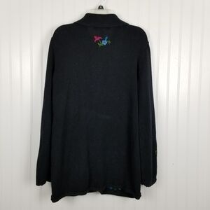 Cardigan Sweater Collar Embroidered Floral Covered Button Long Black Size Large