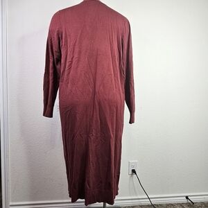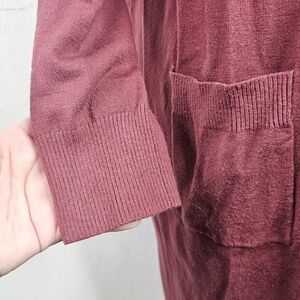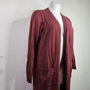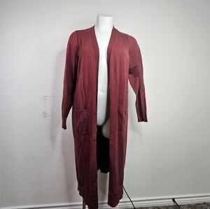 Cardigan Sweater Duster Longline Pockets Cozy Maroon