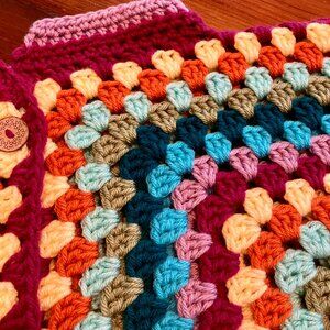 Cardigan Sweater Multicolor Handmade Crochet with 2 Buttons Large
