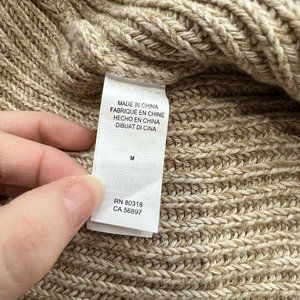 Cardigan Sweater Size Medium M Beige Open Front Faux Leather Trim