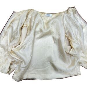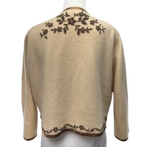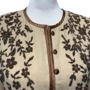 Cardigan Sweater Vintage 1950s Crewneck Cream Women Size S/M Floral Beadwork