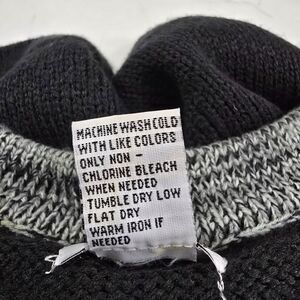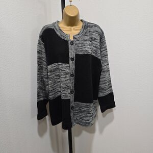 Cardigan Sweater Womens Large Petite Black Gray Colorblock Patch Lagenlook Knit