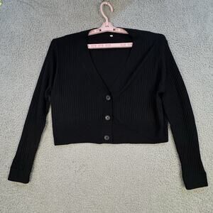 Cardigan Womens XL Ribbed Cropped Sweater Black