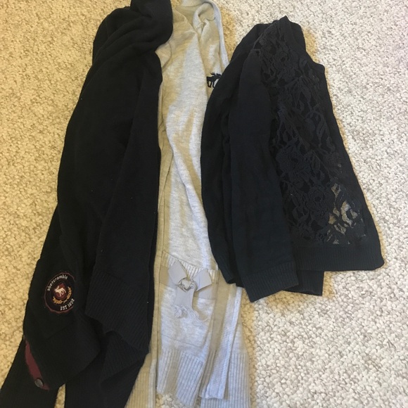 Set of 3 Abercrombie cardigans, two are linger and one is cropped, gently worn but in overall good condition