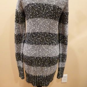 Gray and black horizontal striped button down sweater with a sequined collar. Very comfy and perfect to thrown on while cuddled up with your favorite book and glass of wine! In very good condition!