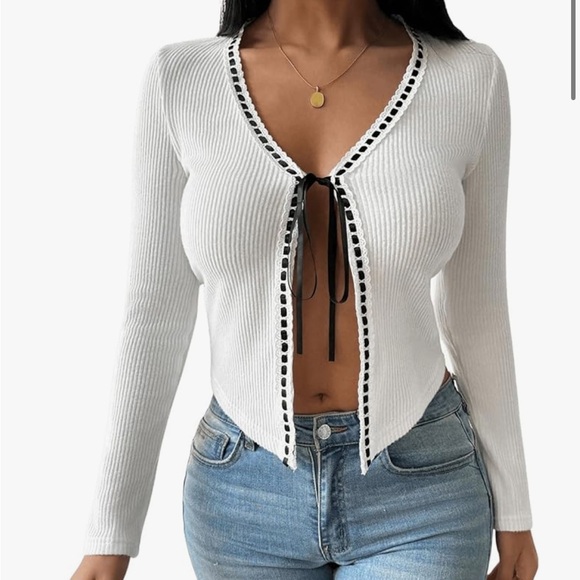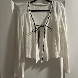Brand new, never worn, white cardigan with ribbon tie & details, runs small