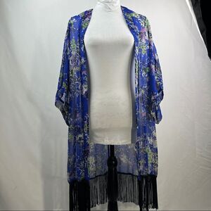 Cardigan with fringe at the bottom sheer  . On a size six mannequin