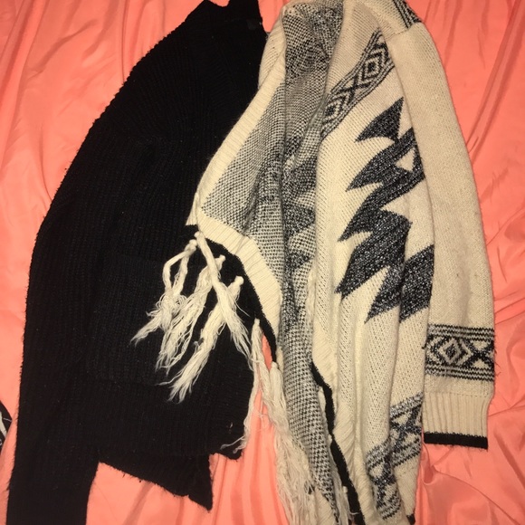 Good condition 2 cardigans one black and one brown with the fringe. Both come together