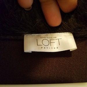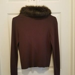 Ann Taylor Loft brown like cashmere sweater ,like new with furry neckline and cute button down