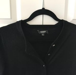 This Cardigan was never used. New without tag. 80% rayon, 20% nylon. Small Petite.