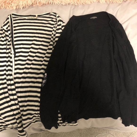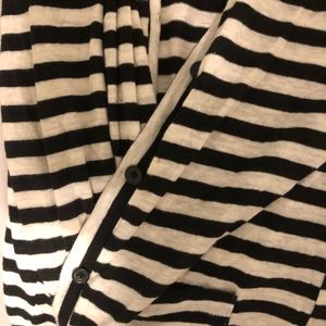 Black and white striped and black button up cardigan to go with anyday wear