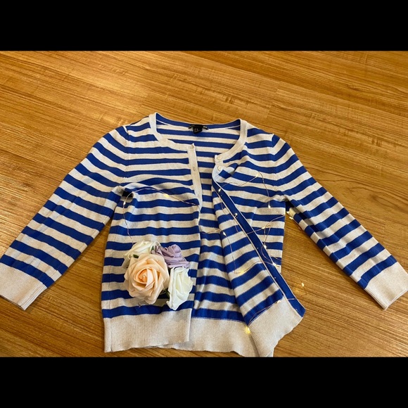 Blue/white cardigans that rarely wear. Color definitely looks darker blue compared in person due to lighting.