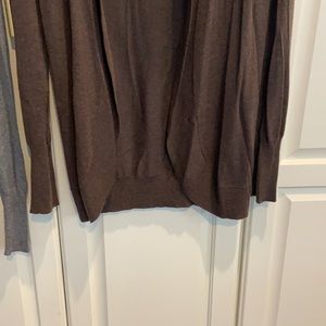 Light weight cardigans. Very lightly worn. No pilling or stains. Open front with curved bottom front panels.