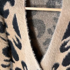 Cardigan sweater Animal Print R Apparel and Fashion tan and Black S/Med