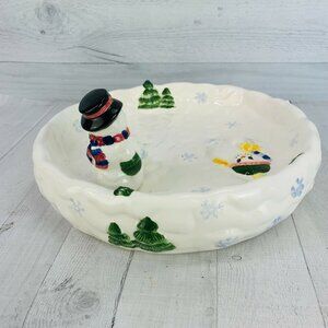Cardinal Inc SNOWMAN COLLECTION Hand Crafted Earthenware 2 Piece Chip & Dip Set