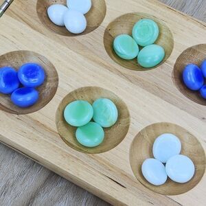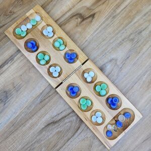 🔸️Cardinal Mancala Solid Wood Folding Game Board & Glass Game Pieces
