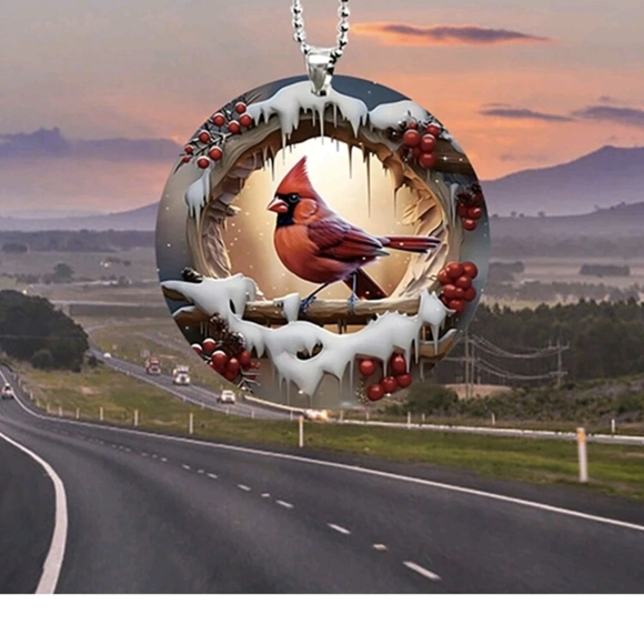 Beautiful pendant featuring a cardinal. Surrounded by berries and snow. Perfect for nature lovers.