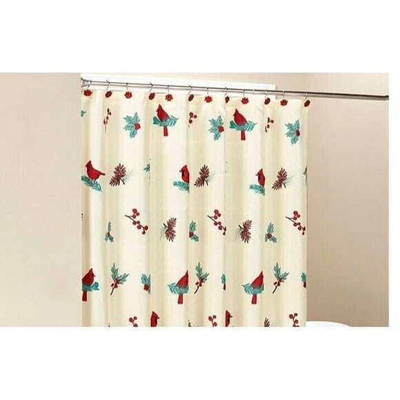 Add a holiday theme to your bathroom with the Cardinal Garland shower curtain.
