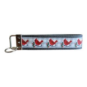 Cardinal Plaid Keychain Wristlet Handmade Key FOB Gray Winter Scene Bird Present