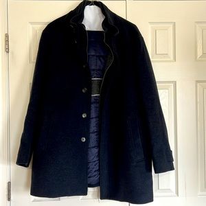 Just in time for winter! The coat is in great condition. 100% wool! Super warm, includes 3 pockets on the inside of the coat, along with extra buttons. No damage present.