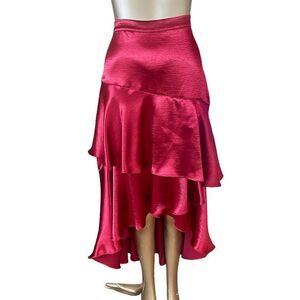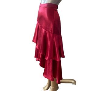 Cardinal red polyester/satin tiered ruffle skirt size small