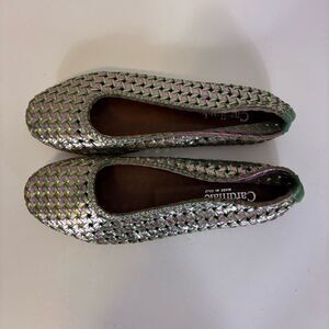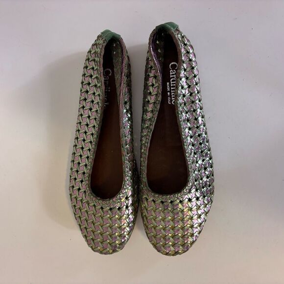 Cardinale Women's Green & Purple Iridescent Leather Woven Flats Size 9