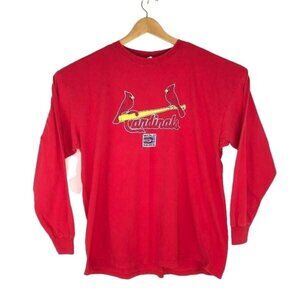 Celebrate a legendary season with this St. Louis Cardinals 2006 World Series long sleeve t-shirt. Featuring the classic Cardinals logo with two birds perched on a bat and a "World Series 2006" patch below, this shirt is a perfect piece of team history. Made from heavy 100% cotton by Fruit of the Loom, it’s tagged a men's 2XL and manufactured in Honduras. The bold red color and long sleeves make it ideal for cool-weather games, and it’s a great collectible for fans of the Cardinals’ 2006 championship team.