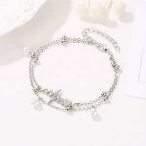 Cardiograph and Pearls Double Layered Ankle Bracelet New