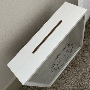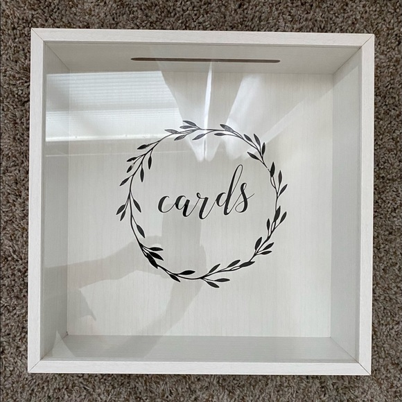 White cards box. Like new. Only used once, for my wedding. Perfect for weddings or any other party. 13.5inches x 13.5inches x 4inches.
