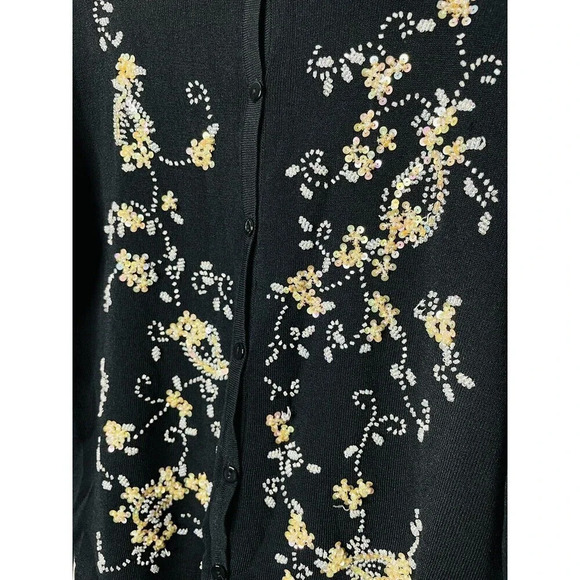 Carducci Button Up Cardigan Sz XL Black Embroidered Stretch Knit Business Casual