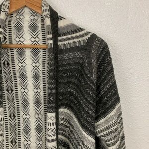Carducci Grey White Waterfall Open Front Knit Cardigan Size L