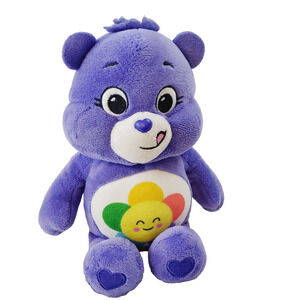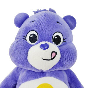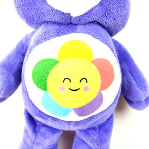 This adorable 10" plush Care Bear features Harmony Bear in a lovely shade of purple. Perfect for fans of the Care Bears franchise and collectors alike, this licensed reproduction stuffed animal is made of a soft and durable cotton blend material. The bear is machine washable and comes without packaging, making it easy to display or gift to a loved one. Included with the bear is a single unit of a cute bear accessory, making this an all-occasion gift idea. The item is not antique or vintage, but it is a timeless classic that is sure to bring joy to anyone who receives it. The bear is not personalized, but it is a great addition to any collection or toy box. Order now and add this Care Bear Harmony Bear plush to your collection!