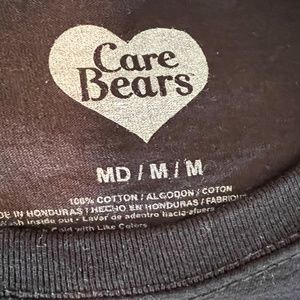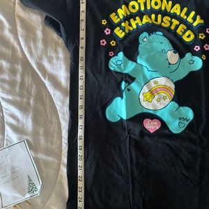 Black tee shirt with Blue Care Bear & the saying "EMOTIONALLY EXHAUSTED"