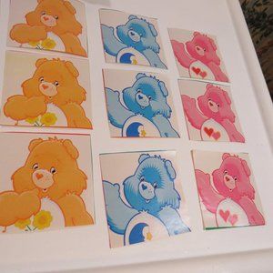 Care Bear wrapping paper squares 2 1/4 x 2ish (back of wrapping paper is white)