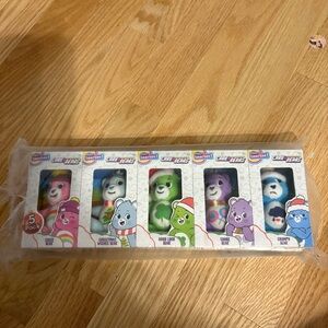 Charming Care Bears plush set. Includes five colorful bears. Perfect for play and cuddles.