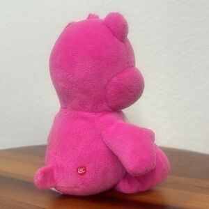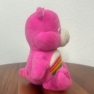 Cute pink plush Care Bear with embroidered rainbow. Has the Care Bear logo on the bum.