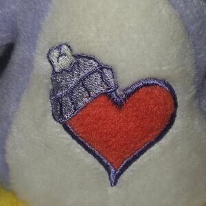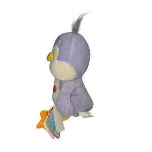 This Care Bears Cozy Heart Penguin plush is a delightful addition to any Care Bears collection. Standing approximately 8 inches tall, this soft, purple and white penguin features a distinctive red heart with a silver stocking cap embroidered on its belly, symbolizing its warm and comforting personality. The plush is crafted from polyester fiber with polypropylene pellets inside, providing a cuddly yet sturdy feel.