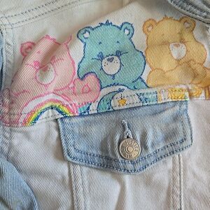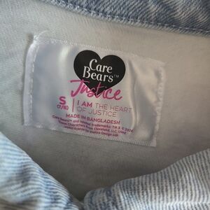Care Bears Justice Denim Jacket Kids Girls Size Small 7/8 Blue White Jean