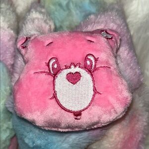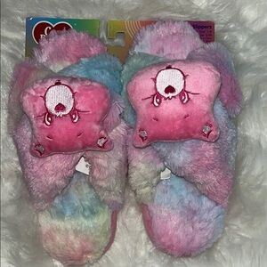 Adorable Cozy Care Bears fuzzy slippers Crisscross Straps Open toe. Pastel Tye-Dye design.