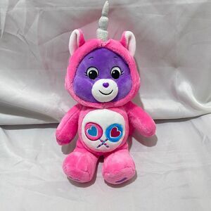 Care Bears Unicorn Share Bear from the 2021 Hoodie Friends Collection 14 Inch. Very clean and well-kept condition. No major damage or stains that we saw at all. May have Some light wear from use and storage but still in good condition.