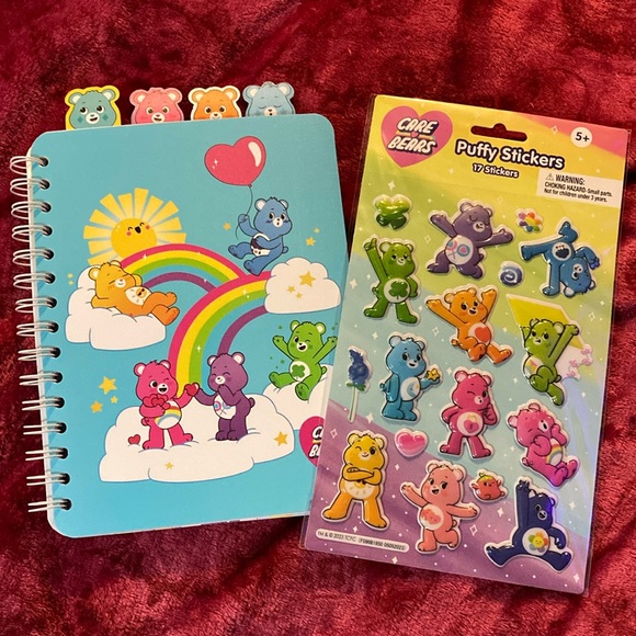 Includes 1 sheet of puffy stickers and 1 tabbed notebook