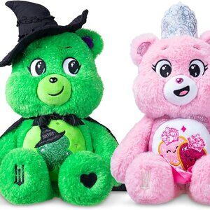In a celebration of friendship, courage, and heart, the Limited-Edition Care Bears x Wicked Collector 2-Pack reimagines two of your favorite Care Bears as beloved characters from the Wicked movie, Love-a-Lot Bear as Glinda and Good Luck Bear as Elphaba. Thoughtfully designed with shimmering silver fleck accents, rich design details, and themed belly badges, these plush bears are as delightful to cuddle as they are to display. Packaged in a premium collector’s box, this Wicked 2-Pack is a must-have for fans and collectors alike. Whether you’re adding to your collection, surprising a Wicked superfan, or searching for a unique holiday gift, this special edition plush set is sure to enchant anyone. Don’t miss your chance to own this magical collaboration—once it’s gone, it’s gone!