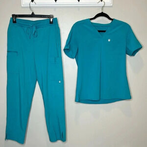 Care and Wear Women's Teal Scrub Set Flexible Material and Lots of Pockets