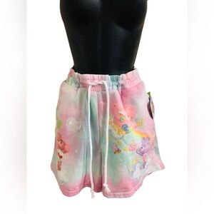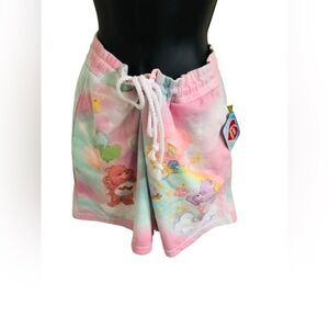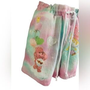 Care bears pink green watercolor effect drawstring waist cozy lounge pj shorts size Large new
