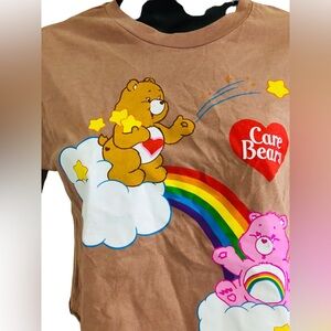 care bears tan light brown cropped rainbow t-shirt size XS new