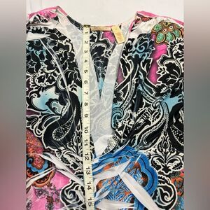 Caren Sport Multicolored Ruched Tunic Top V-neck Split Sleeves
