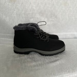 Carenurse (NEW) men’s black faux fur lined snow/ work boot, faux leather, water resistant, warm fur lined, anti slip work ankle boot/ shoe, casual, lightweight, hiking, outdoor trekking boot, size 10, New without box