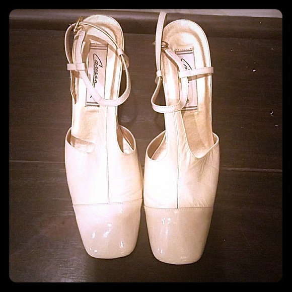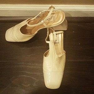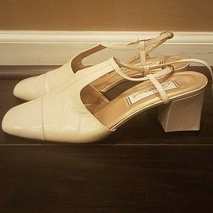 Ivory slide on with strap are the heel