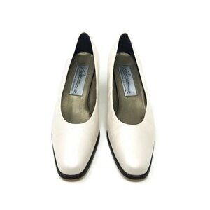 Caressa Crosstown Collection Ivory Leather Slip On Chunky Heel Pumps Womens 10 B
